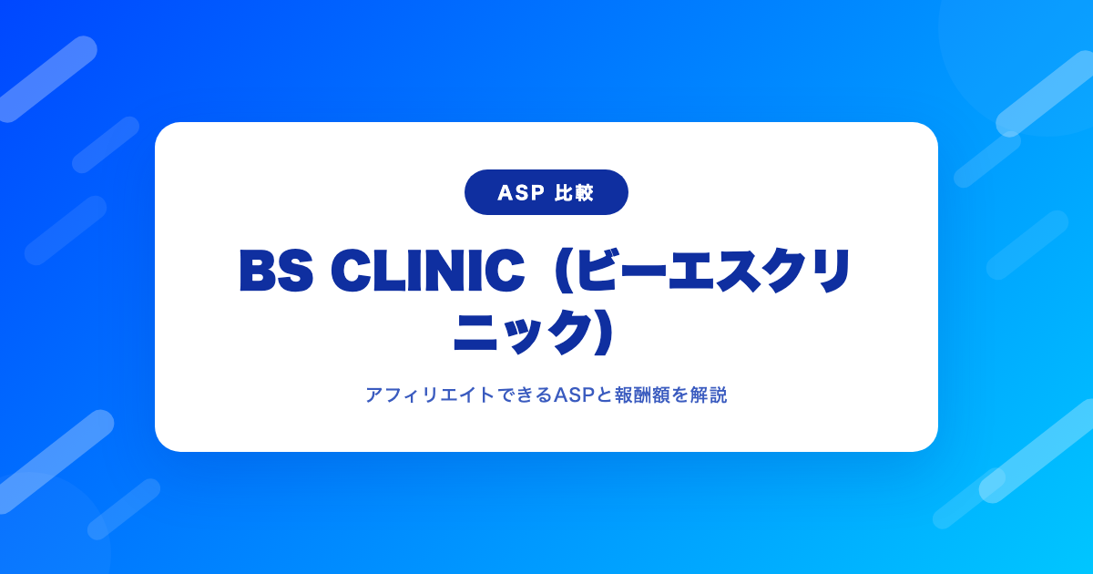 BS CLINIC(ビーエスクリニック)をアフィリエイトできるASPと報酬額|やり方も解説