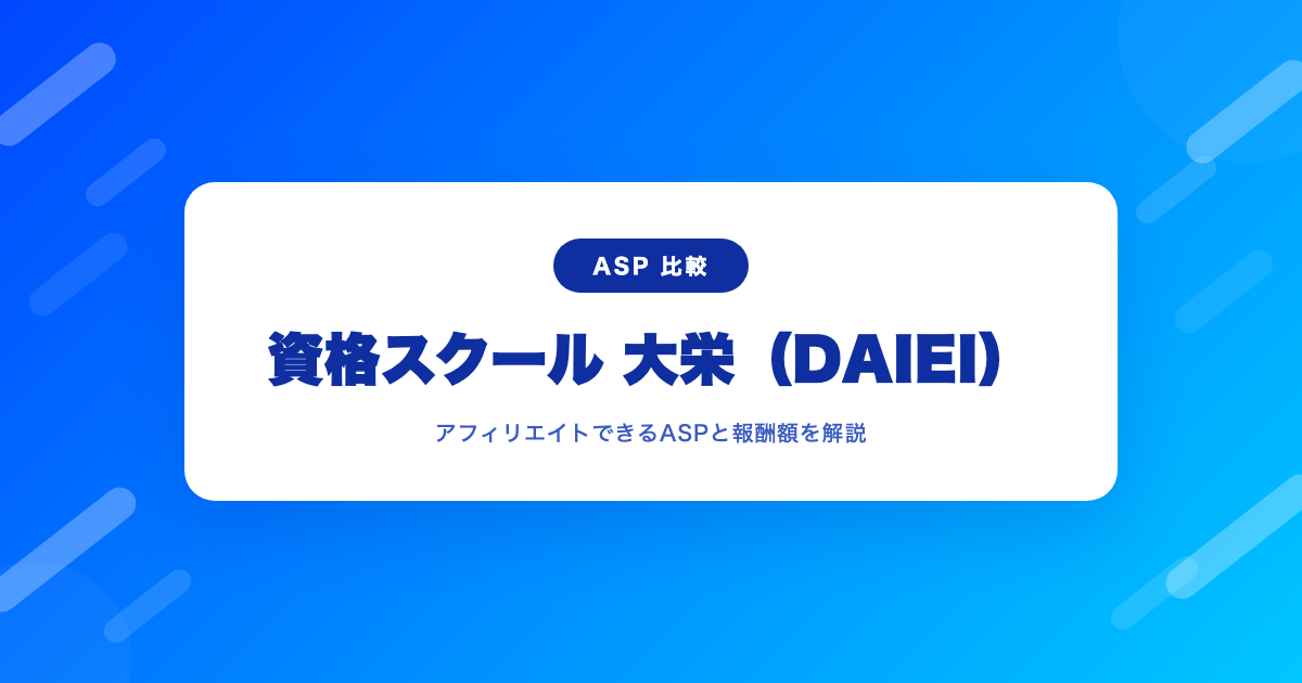この記事では資格スクール 大栄(DAIEI)のアフィリエイト案件を取り扱っているASPと報酬額を徹底比較します。