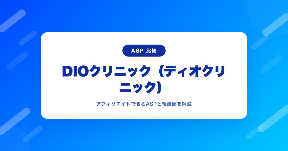 DIOクリニック(ディオクリニック)をアフィリエイトできるASPと報酬額|やり方も解説
