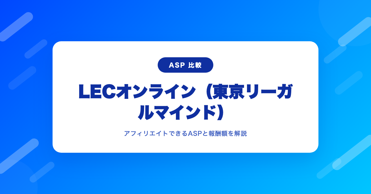 この記事ではLECオンライン(東京リーガルマインド)のアフィリエイト案件を取り扱っているASPと報酬額を徹底比較します。