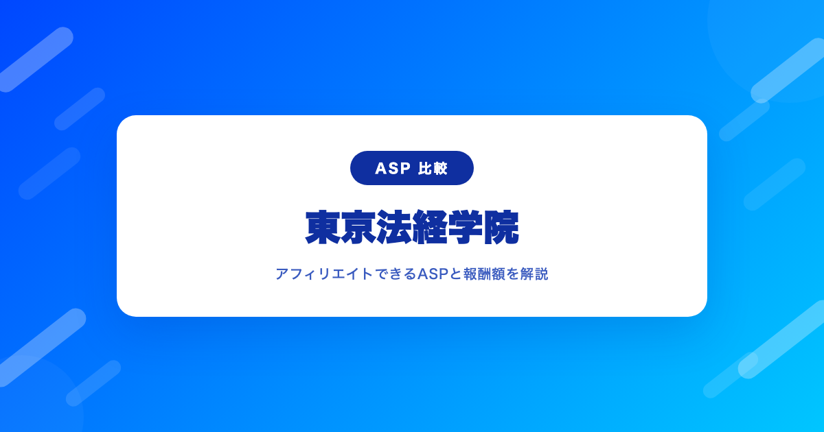 この記事では東京法経学院のアフィリエイト案件を取り扱っているASPと報酬額を徹底比較します。